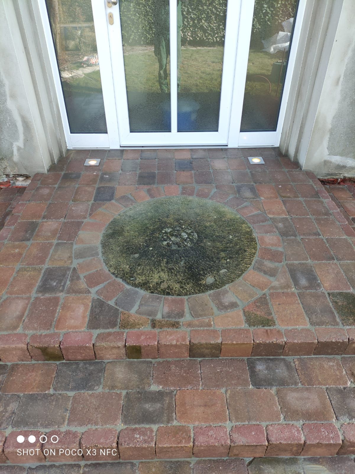 Neupflasterung des Hofs mit Natursteinmauer-Hochbeet als Abgrenzung